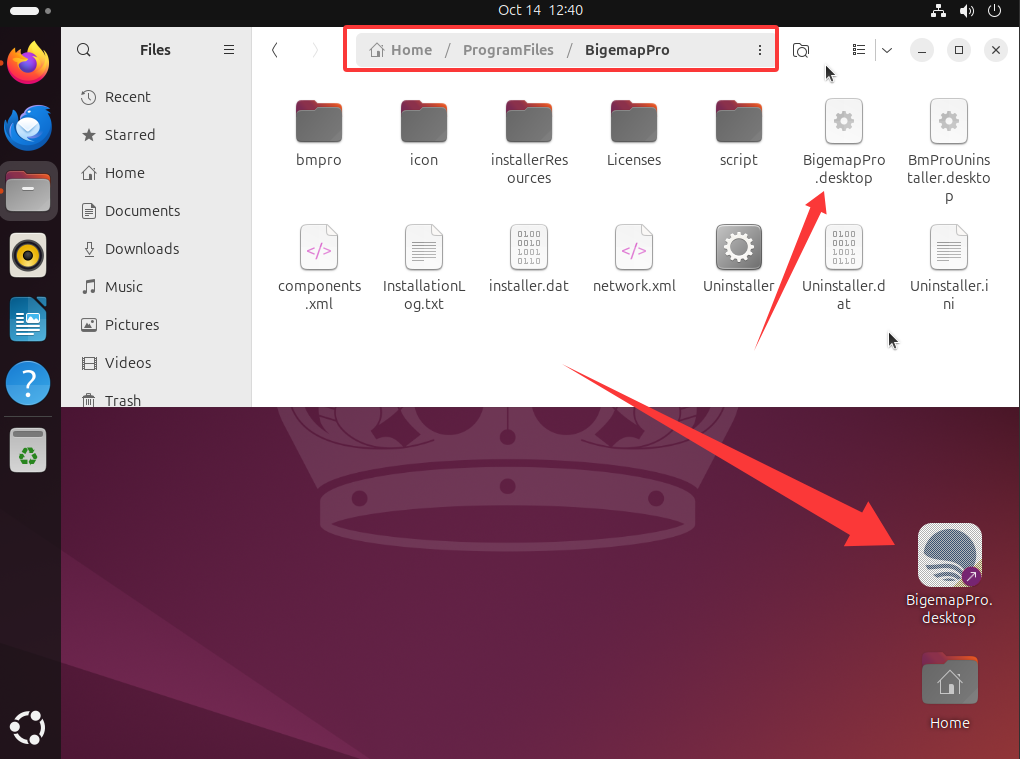 安装完成后,可以在桌面上看到软件的启动图标,也可以在安装目录里面找到(一般在:Home/ProgramFiles/BigemapPro)