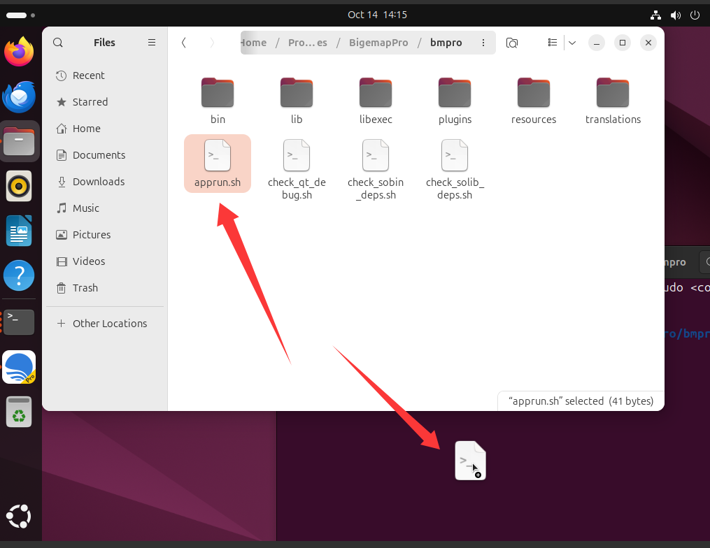 直接将 apprun.sh 文件拖到打开的命令窗口中,然后回车